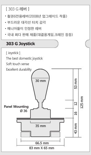 Created by Samducksa (Crown) in the early 2000's and used in the Crown (Crowin) CWC 202 and 203 Cabinets, the Crown Lever (CWL) 303G (Green) was re-released as an upgraded model in 2008 as an exclusive "Official Lever" for Tekken 6 and came stock in Tekken 6 Arcade Cabinets in South Korea. Unlike most Korean Levers, the Crown 303G placed the microswitches in a reverse pattern. This same configuration was later used on the Samducksa 307 series lever, the SDL 301DX (Infiltration) lever, and the most recent Shinsun and Knee Neo Levers.
