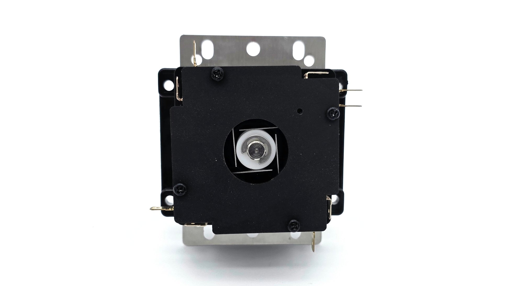 The VIMIL Core (bobbin) is unique, as it provides more tension on the top and bottom of the grommet to ensure a secure fit and reduce any core rotation and provide more premium/smooth feel during play. The tolerance for the shaft is also very tight, reducing any chance for shaft spin. Additionally, each core has a 'o' marked to identify the UP input direction. The core has a very slight degree of angle that places the actuator head slightly further away from UP input switch. The direction is designated on the core and has an matching 'o' hole on the switch plate cover to reflect the "UP" direction. When assembled correctly, the actuator head will touch LEFT, RIGHT, and DOWN inputs, but the UP input will have a slight space between the arm hinge and the actuator head. This provides moderate input actuation for Left, Down, and Right inputs, while creating a smaller input zone for UP to reduce accidental inputs in Tekken gameplay. For 2D fighters like Street Fighter, you may want to opt for the 16.2mm actuator so that the UP input is moderately spaced, while LEFT, DOWN, and RIGHT inputs are quick to actuate.